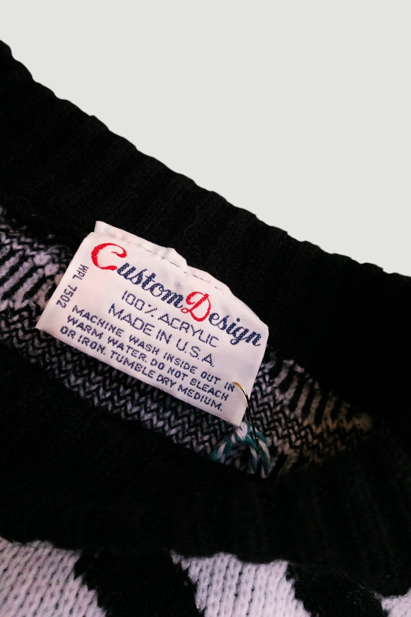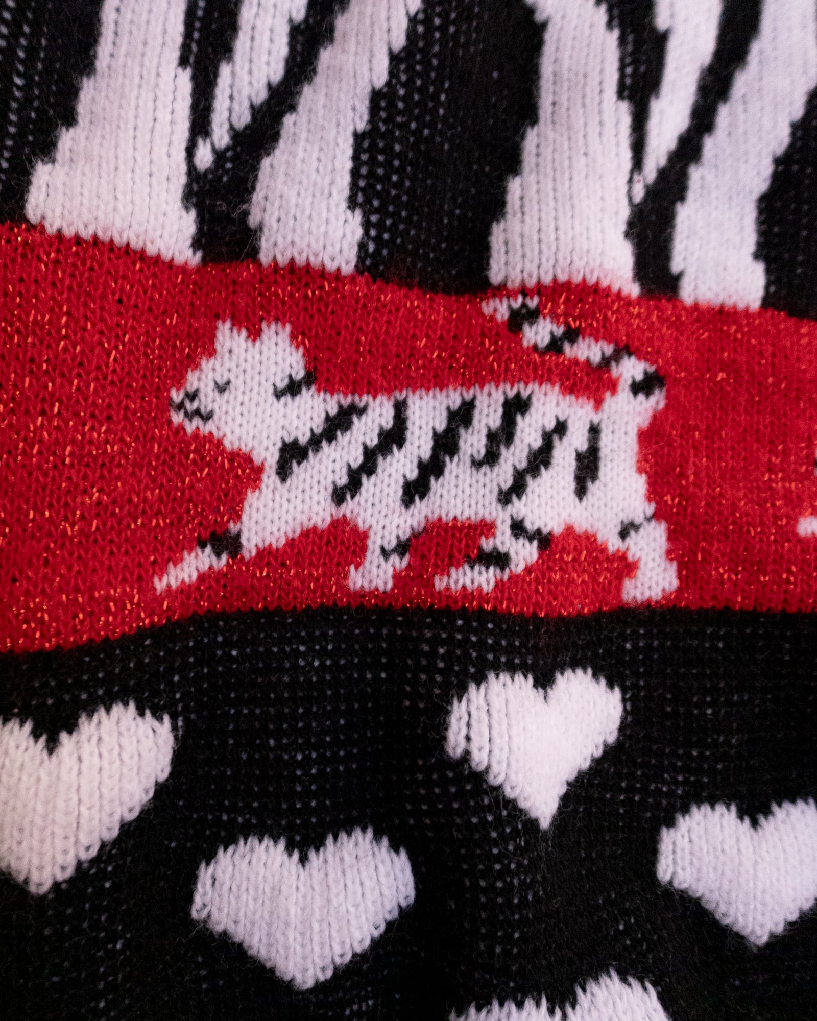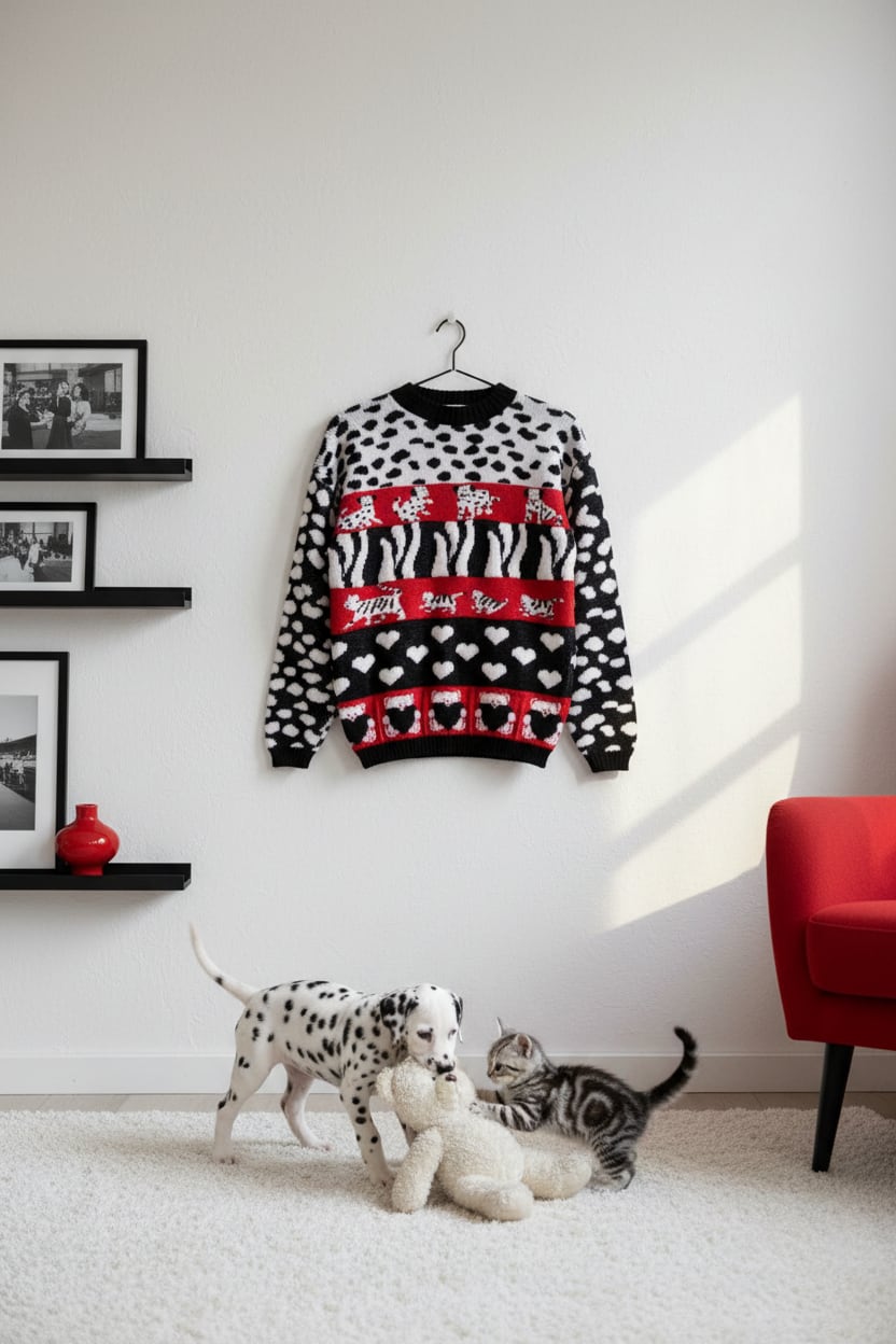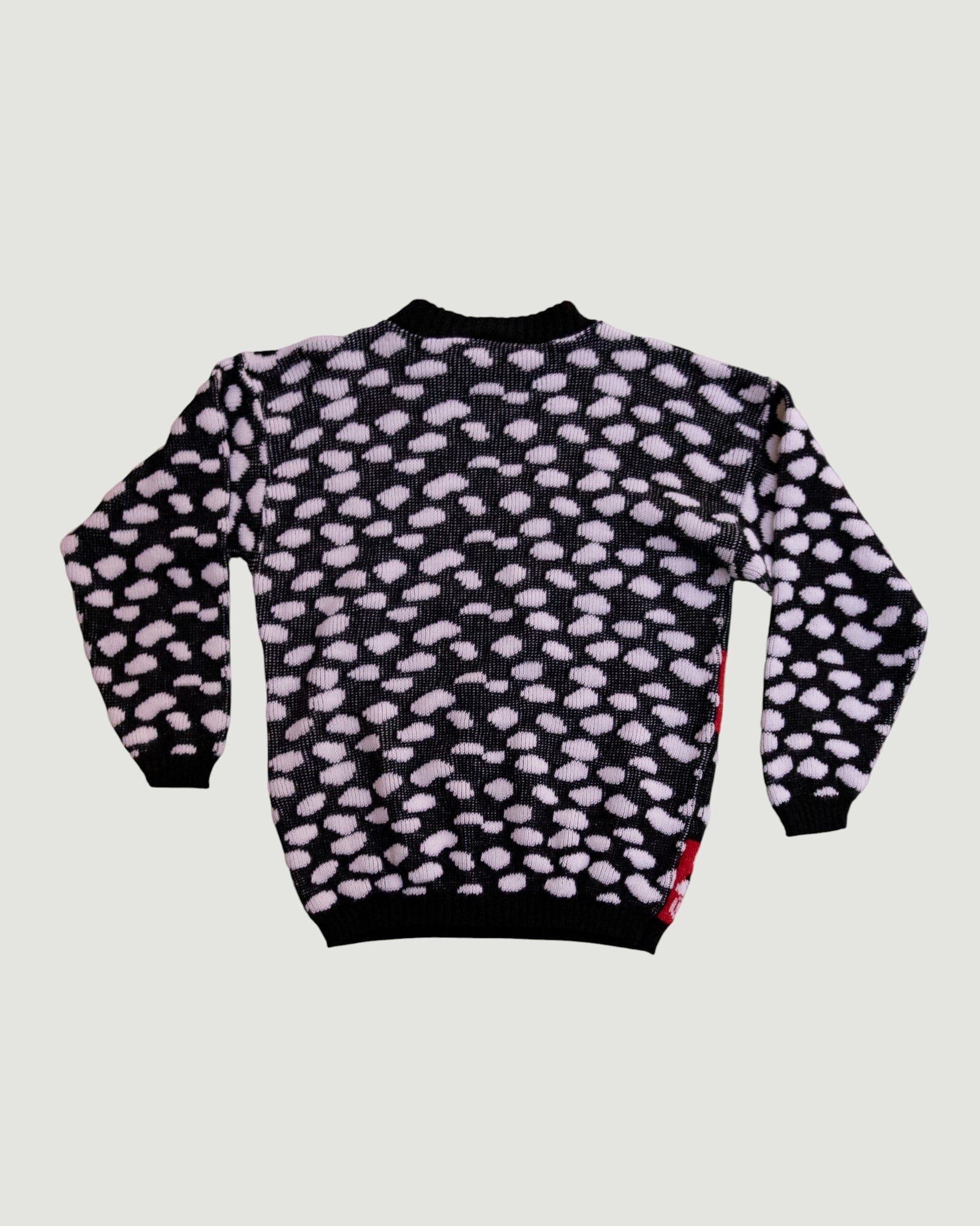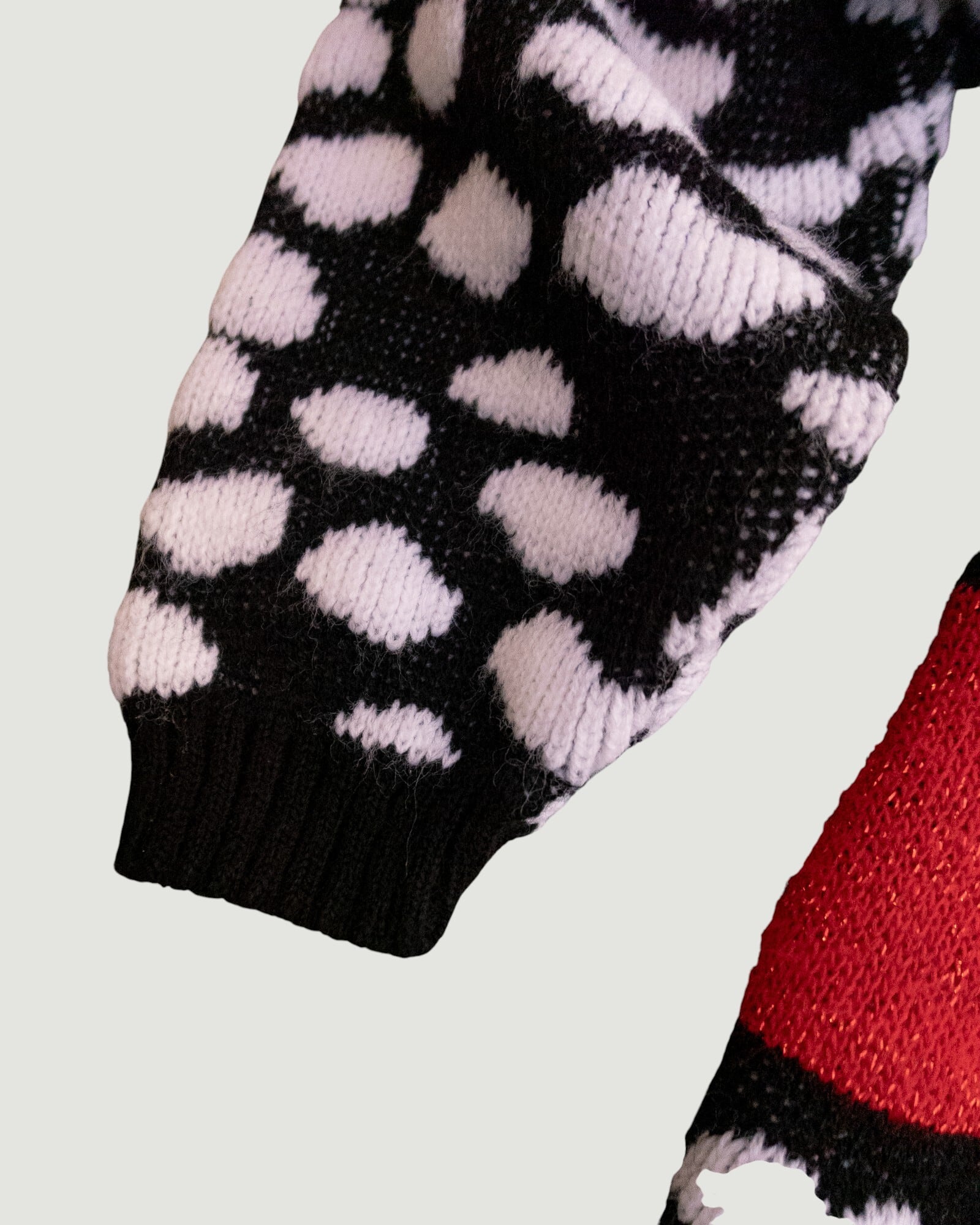 赤と黒のコントラストが目を惹く、モダンな雰囲気のセーター。