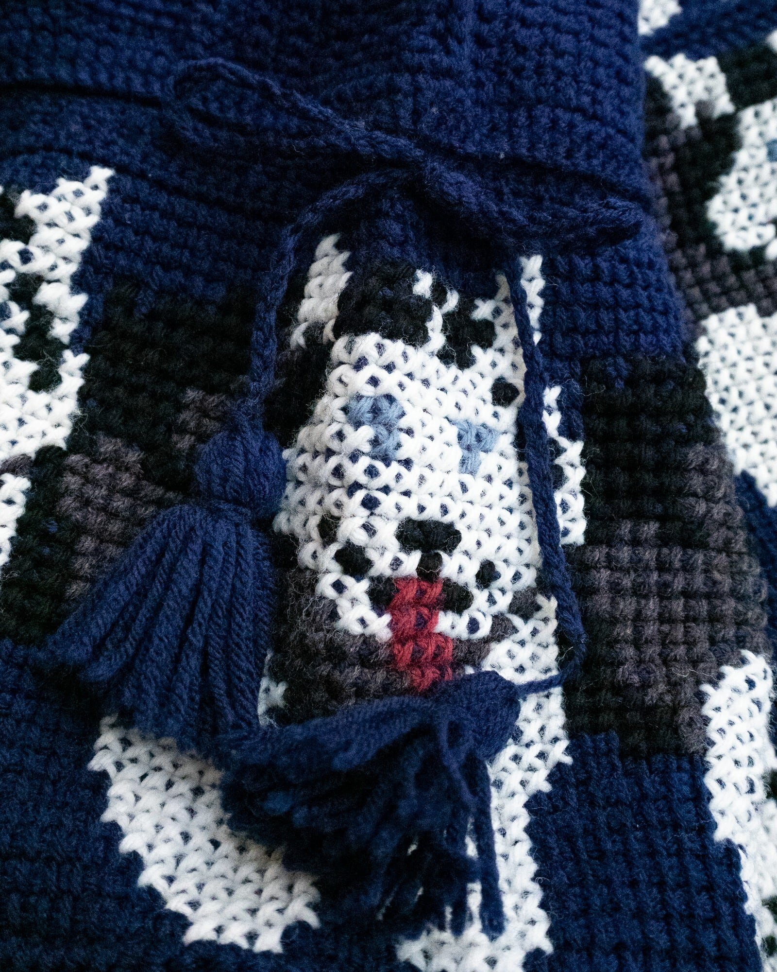 同じ編み図をひらすら編んで、パッチワーク的につなげたような雰囲気。