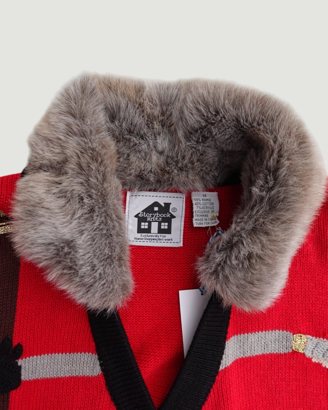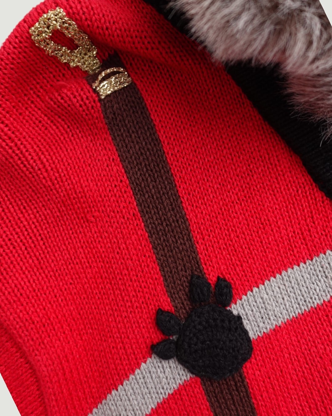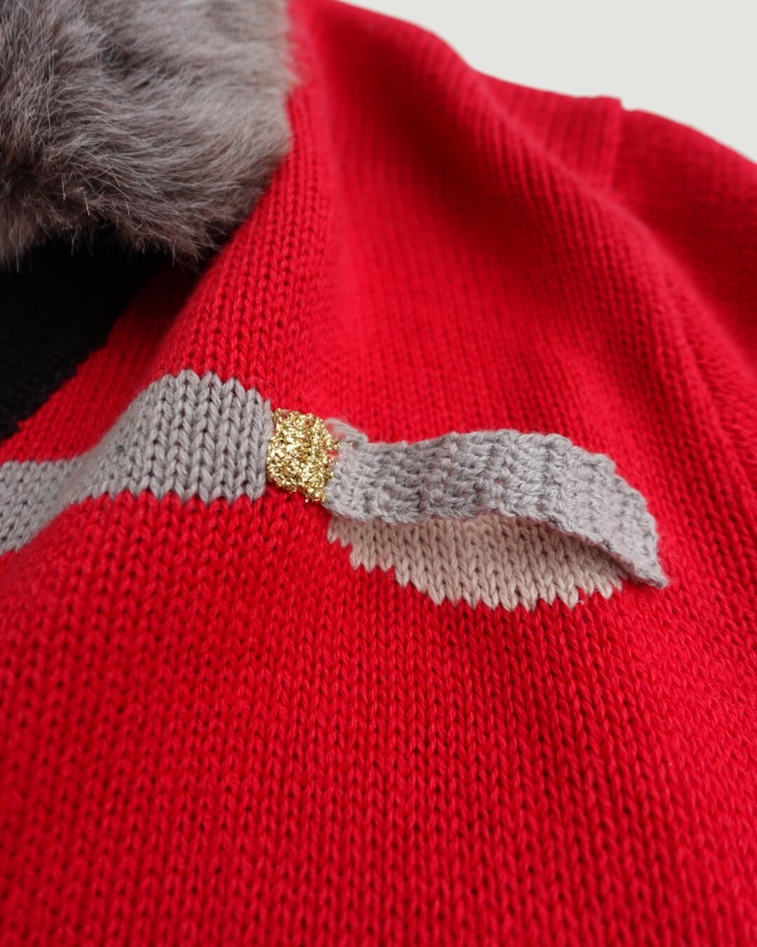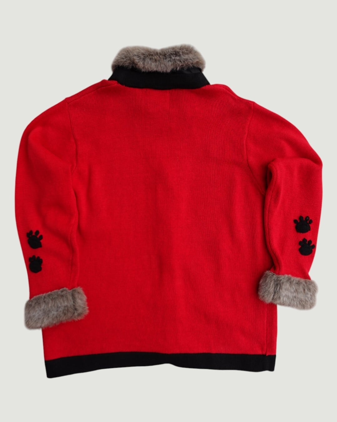 ベースの赤は派手すぎず、フェイクファー効果で上品な印象。