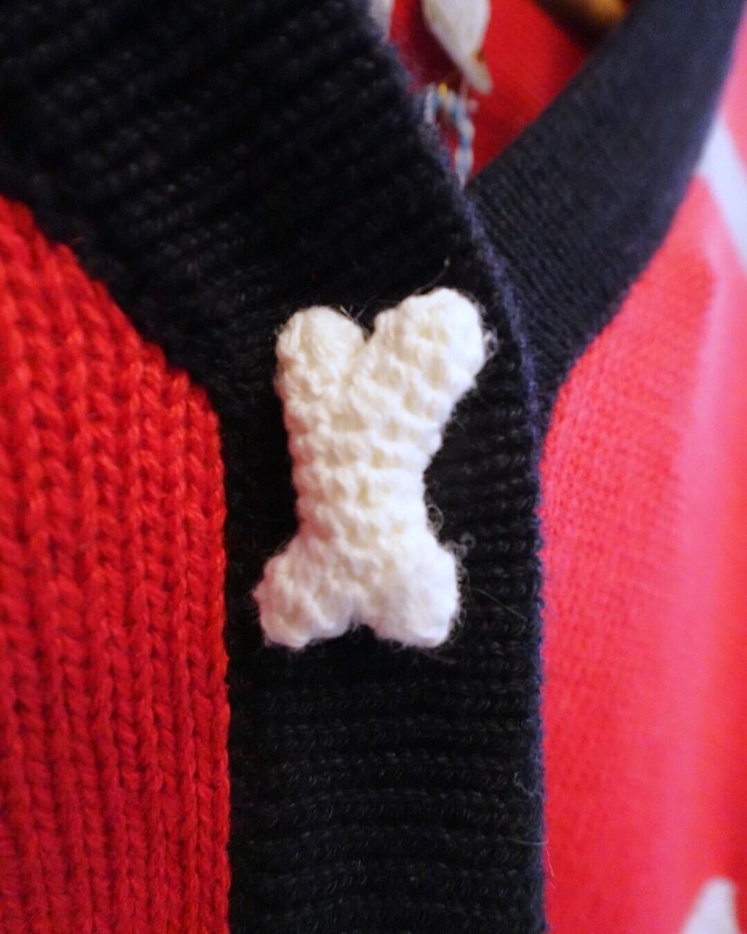 骨型ボタンや肉球アップリケなど、かわいい要素がぎゅっと詰め込まれ、