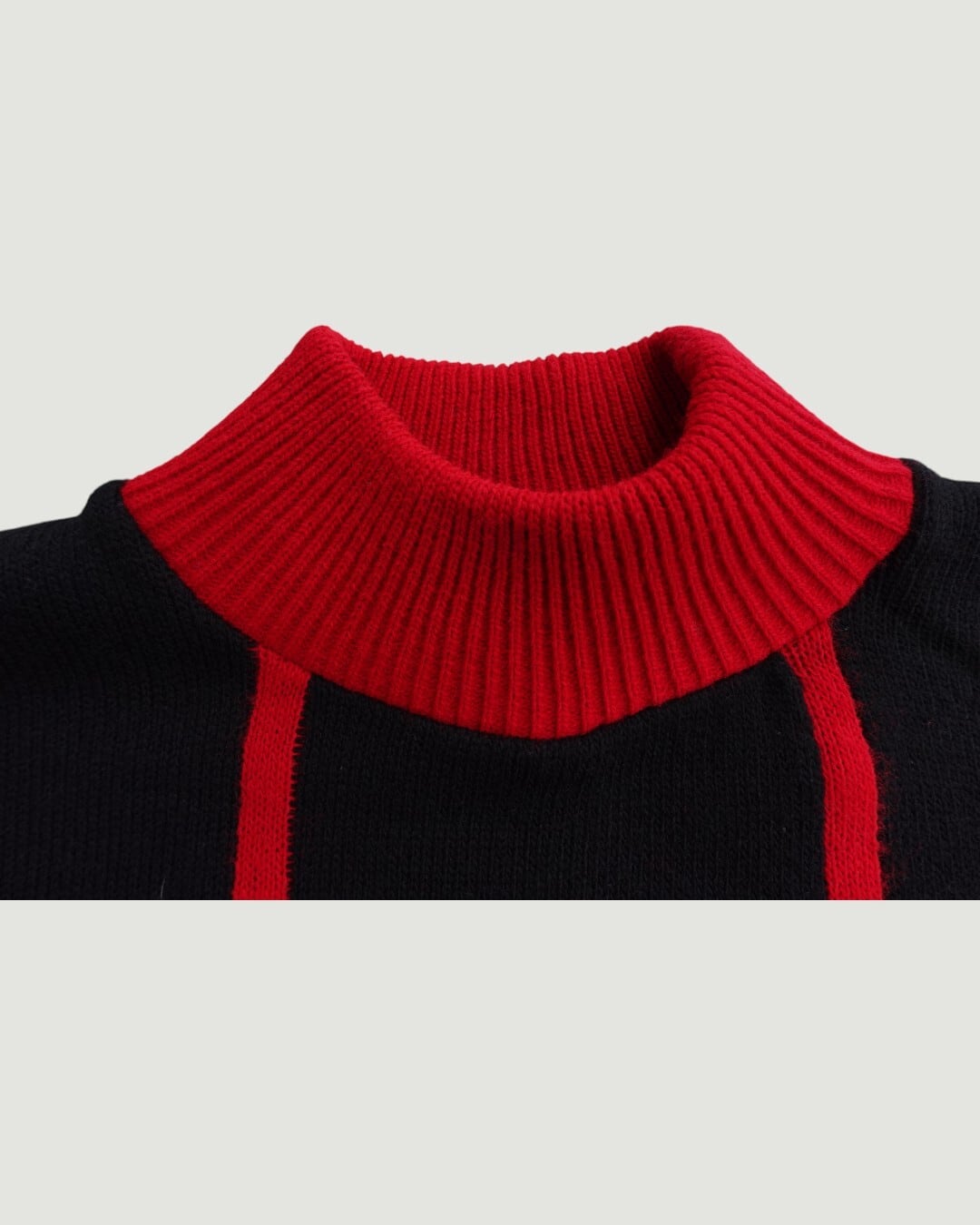 赤のリブと縦ラインがアクセントになっていて、甘くなりすぎずモダンな印象です。