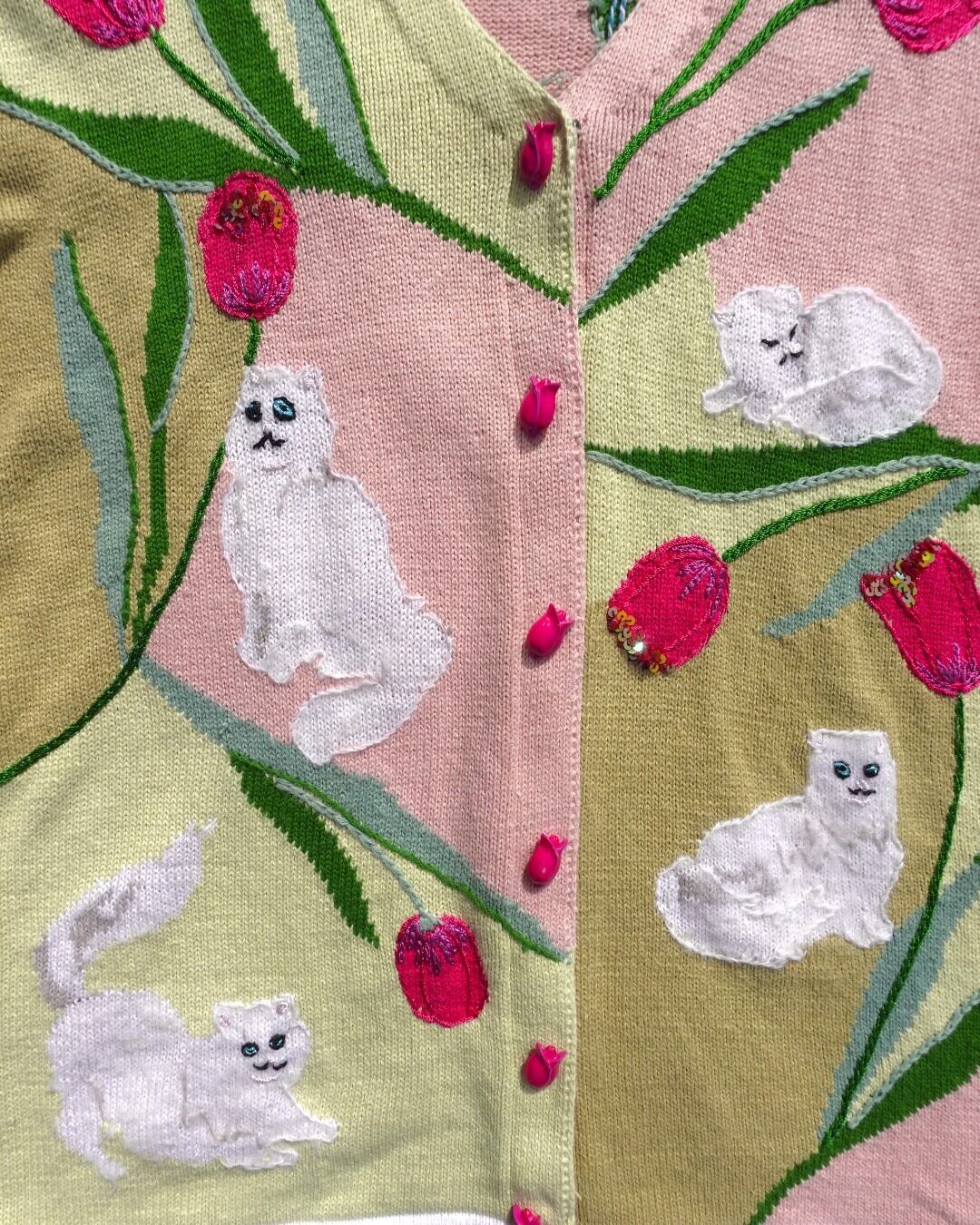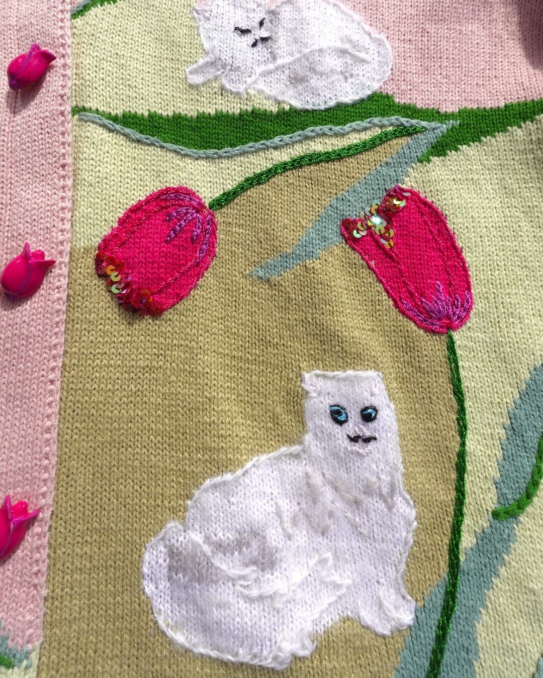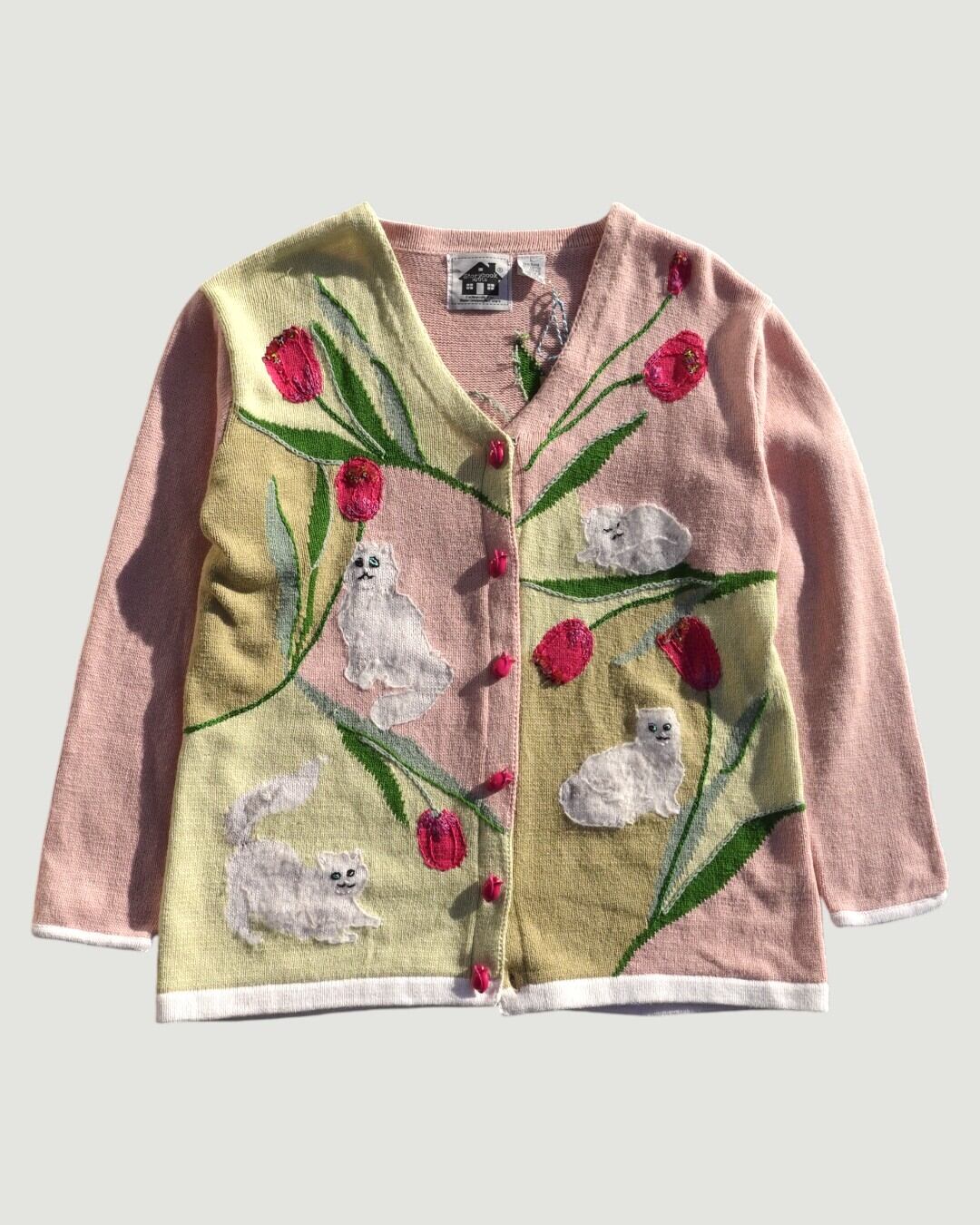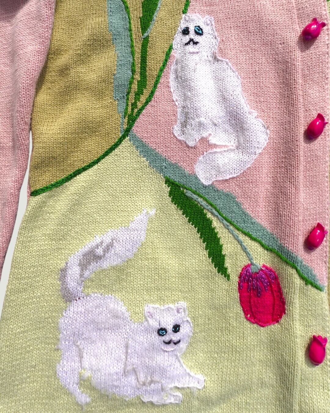 【古着】チューリップと白猫のカーディガン