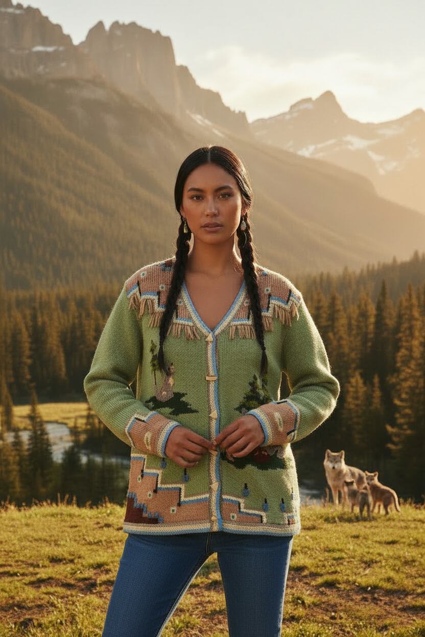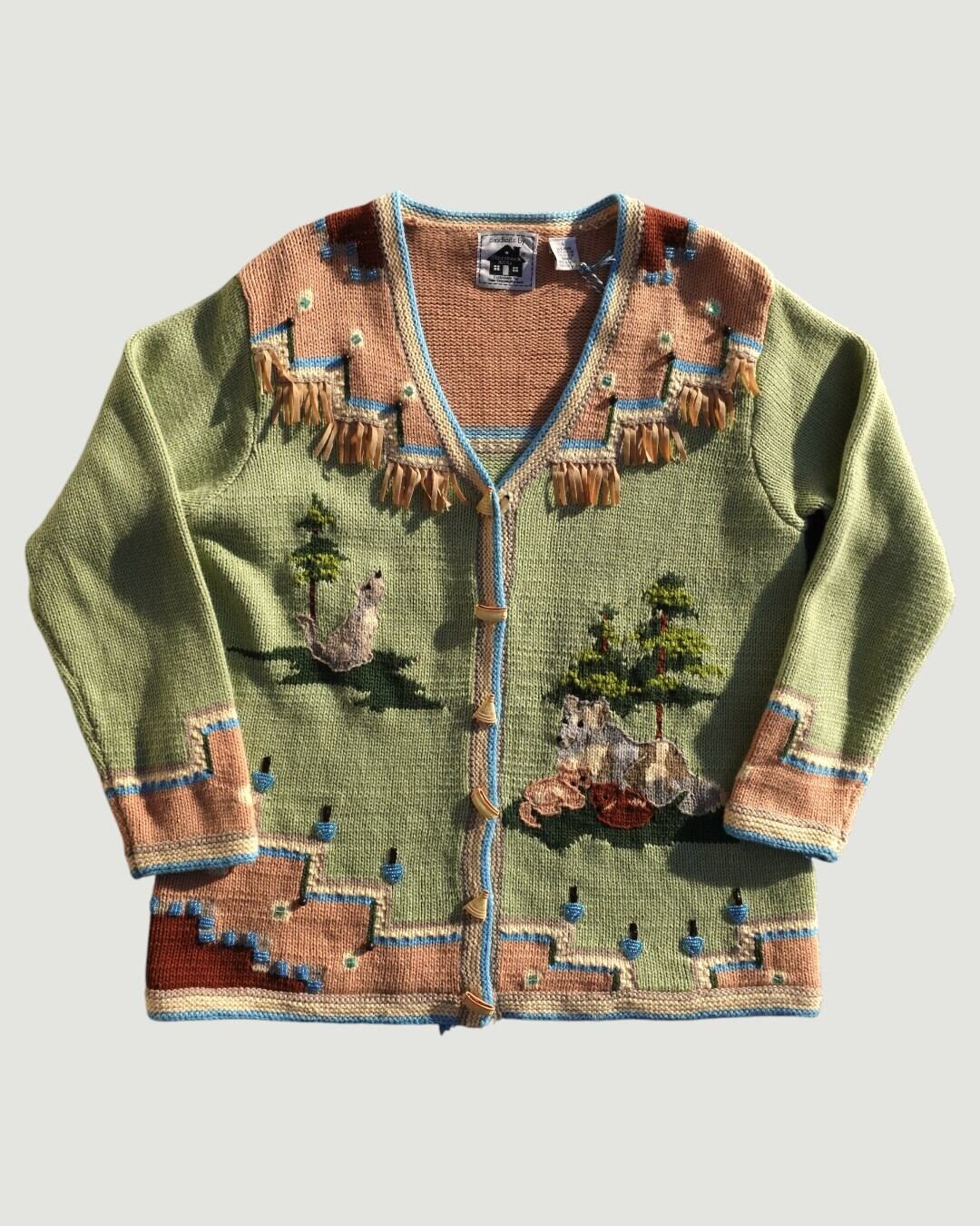 肩まわりの幾何学柄や、フリンジの装飾がネイティブアメリカンぽくてかっこいいです。