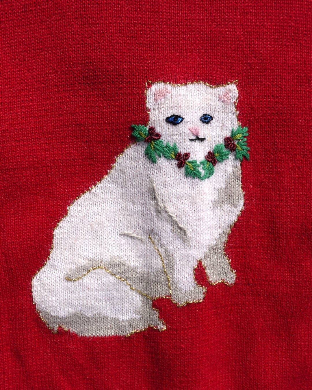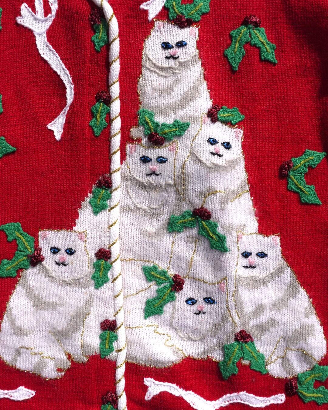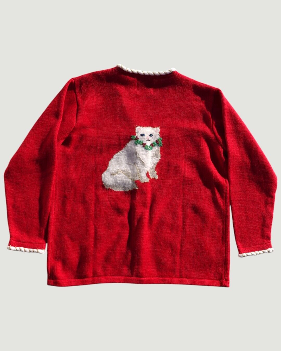 【古着】ヒイラギ白猫ツリーのカーディガン