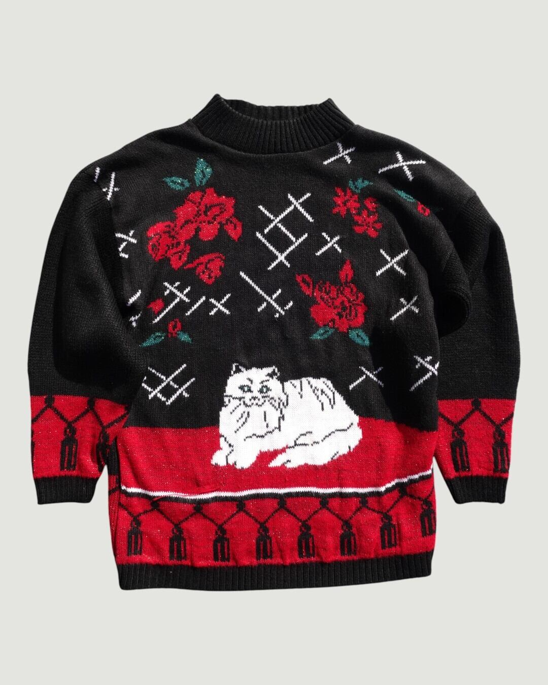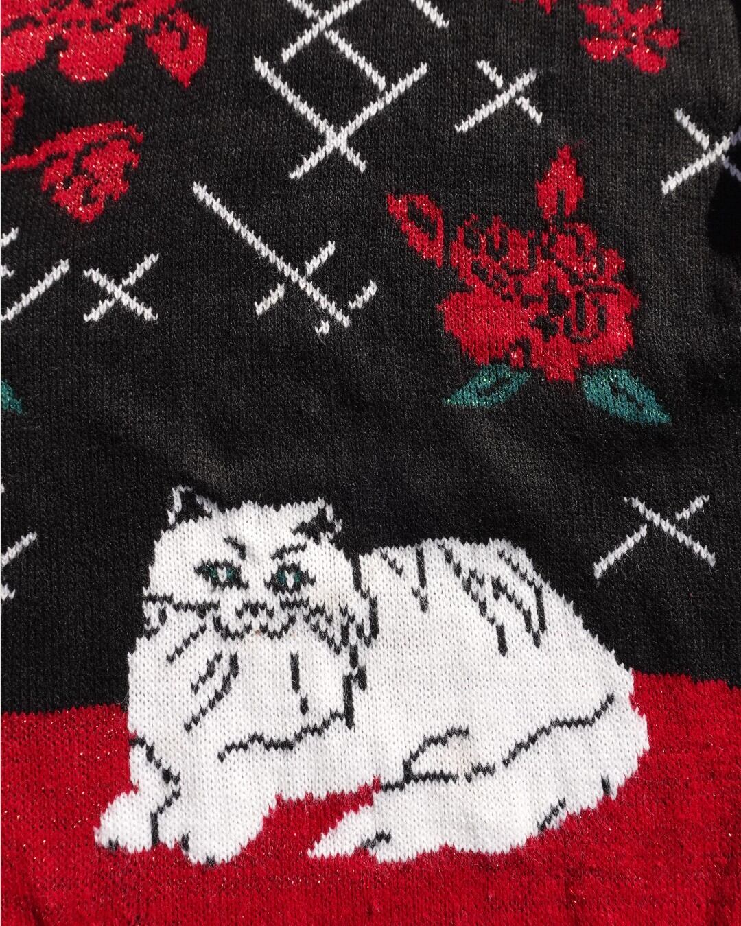 【古着】ローズ&白猫ニット