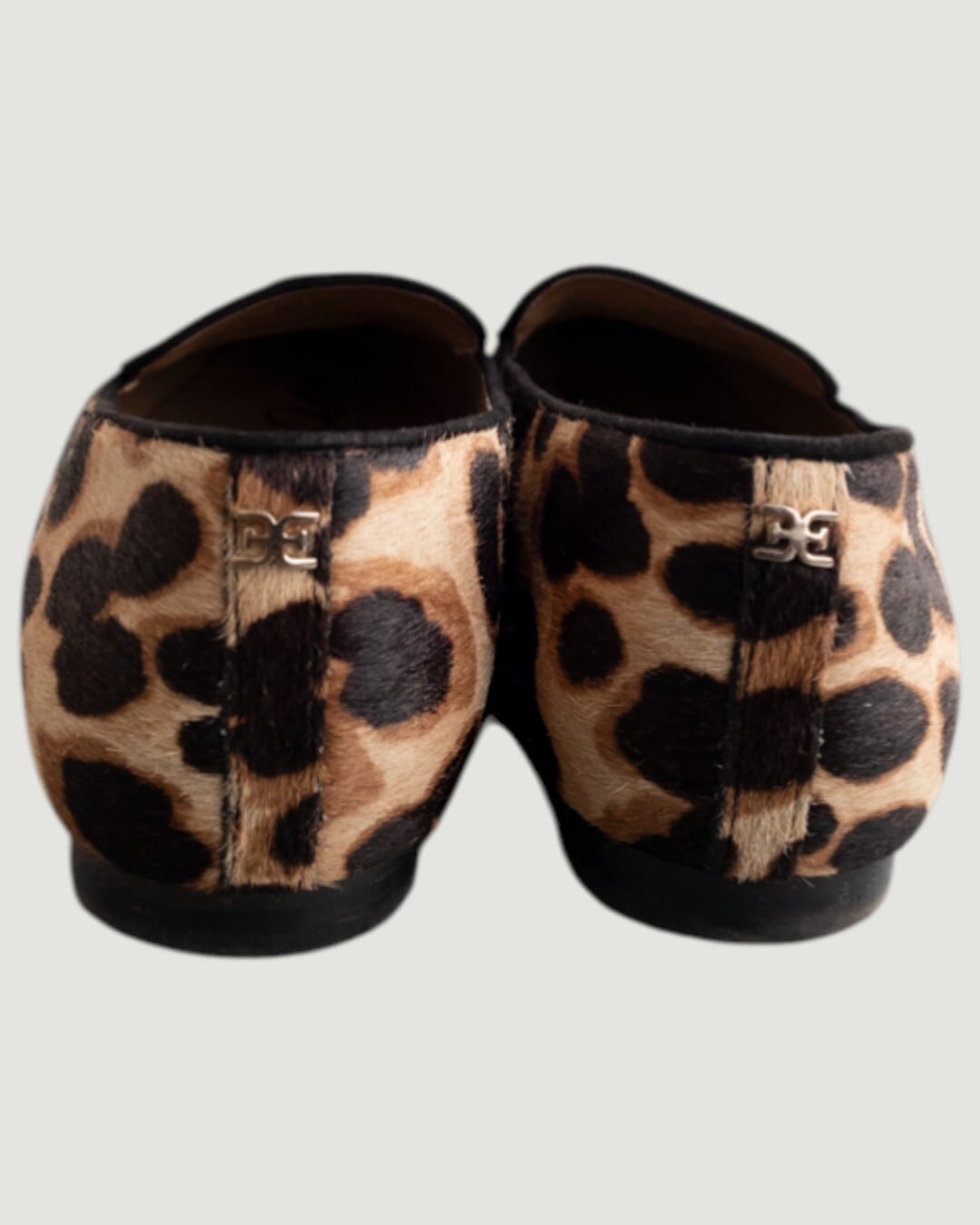 かかと部分にはさりげなくロゴ金具がついており、後ろ姿にもブランドらしいポイントが。
