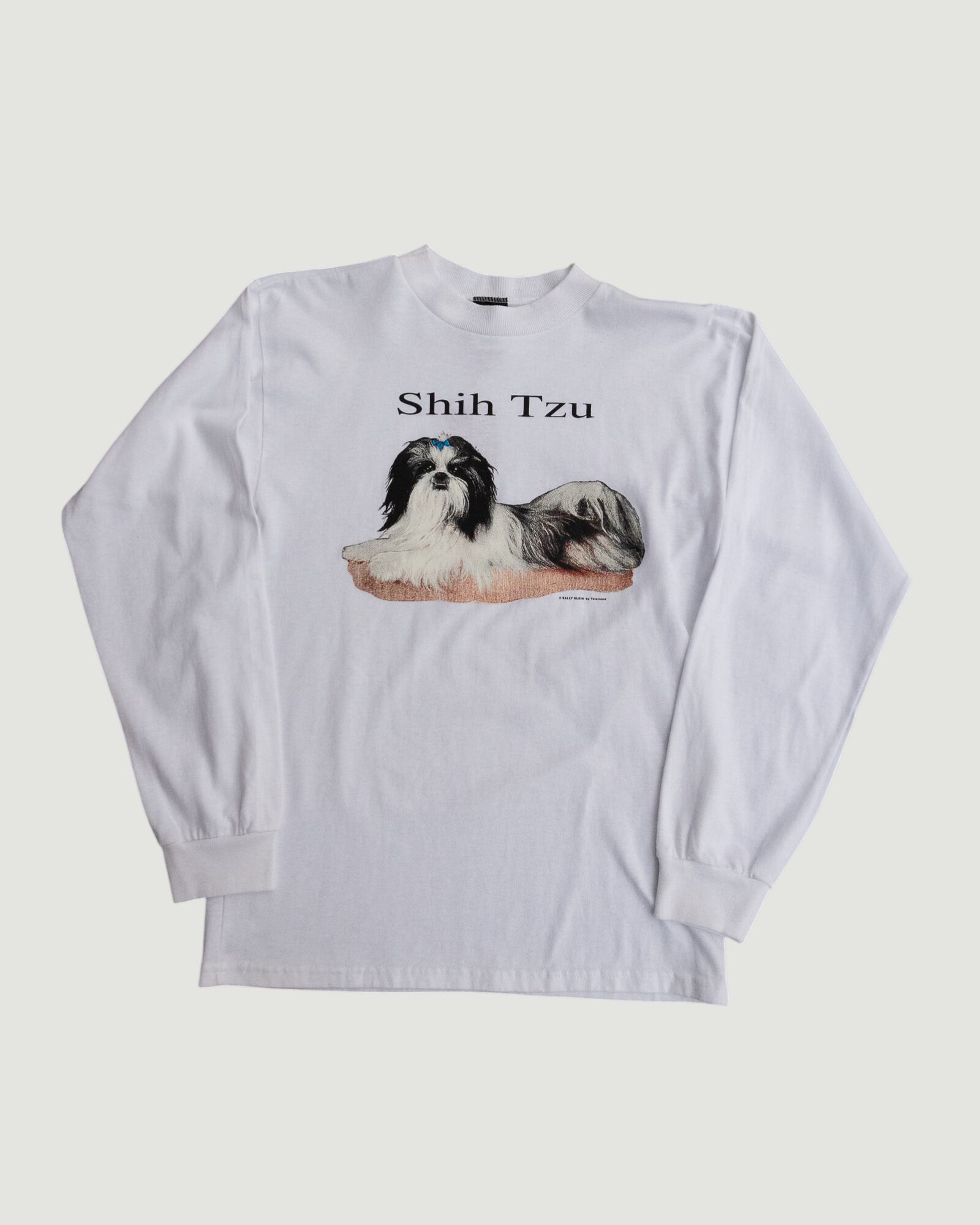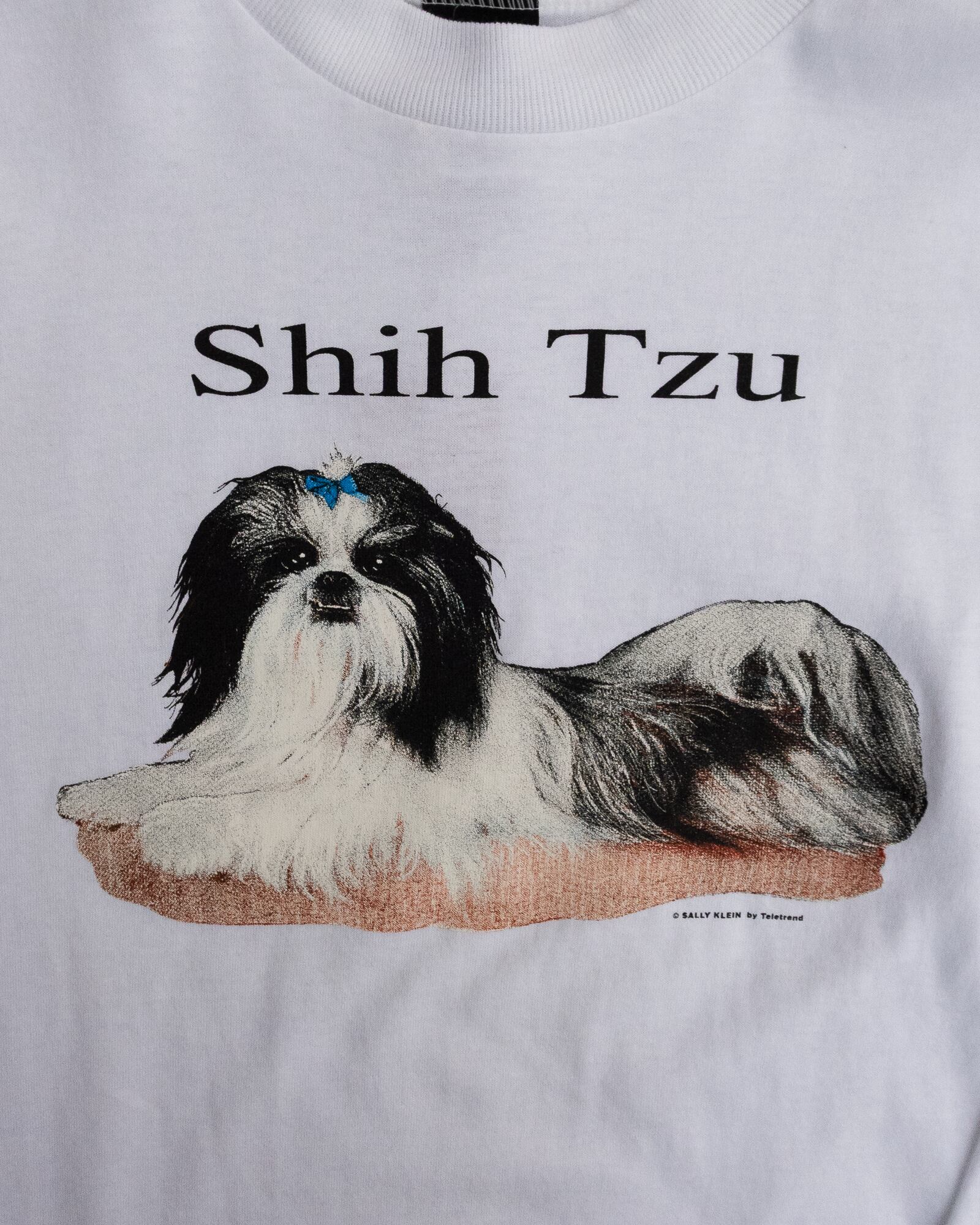 90年代ドッグTの特徴的な、シンプルなフォントでの“Shih Tzu”表記と、リアルタッチのイラスト。潔いデザインで味わい深いです。