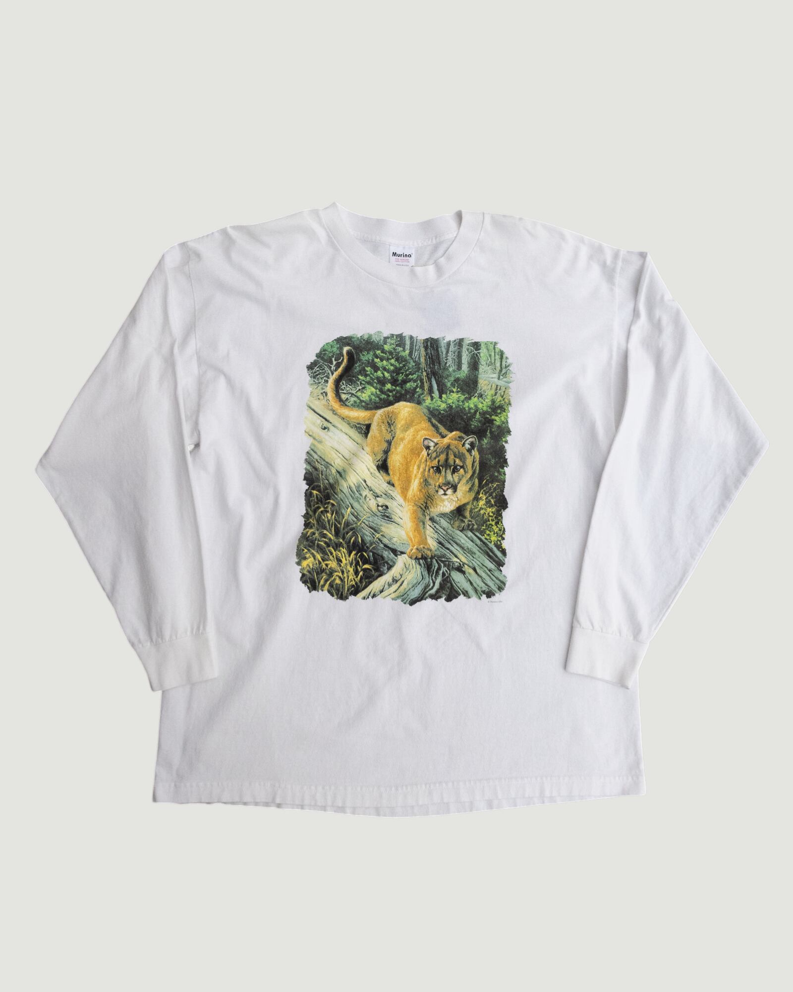 ボディはUSA製のMurinaタグ。100%コットンで、ややゆったりとしたXXLサイズ。ロングTなので、季節の変わり目にも使いやすいです。
